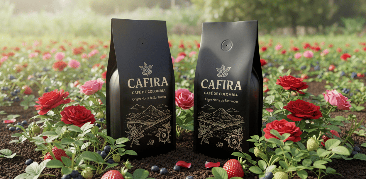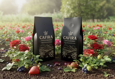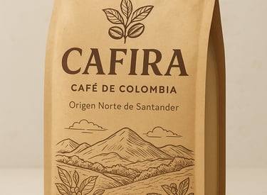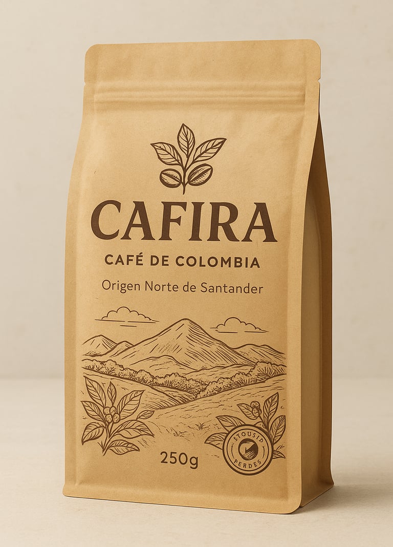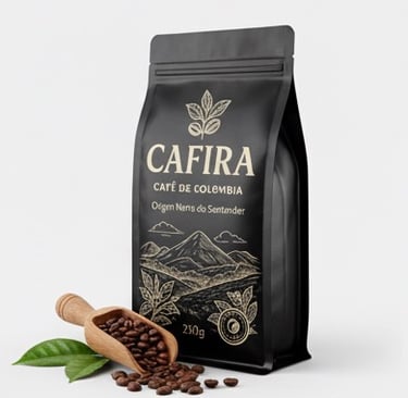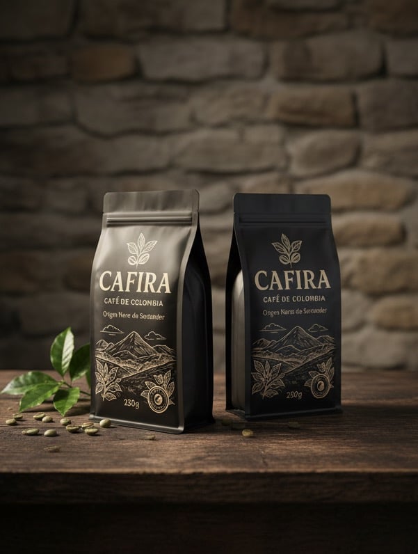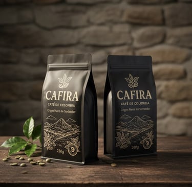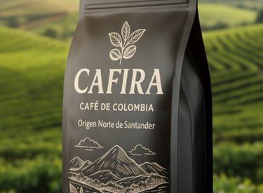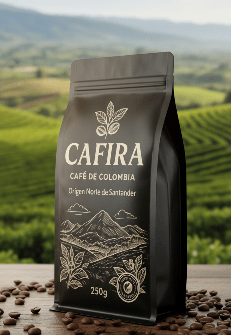 Café Cafira une tradición y sostenibilidad para ofrecer café colombiano premium, con un diseño moderno y ecológico que refleja calidad y cultura auténtica.